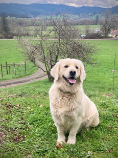Our affectionate AKC registered English Creams are part of the farm's inner circle - soaking up love from the family, digging in our mulch piles, and enjoying an afternoon snooze alongside the goats and sheep. Their good-natured temperament and intuitive nature makes them a perfect family pet or therapy dog.